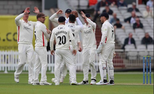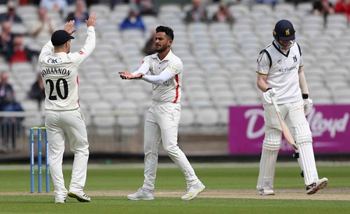 With century-maker Dom Sibley well set the Red Rose bowlers focused their attack on the tailenders and it didn’t take long for that tactic to bear fruit as Hassan Ali had Nathan McAndrew (15) and Craig Miles (4) trapped lbw to leave the visitors on 288-9.