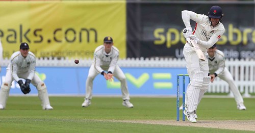 Wells reached his second half century of the season from 90 balls at the end of the 30th over with a total of 85 on the scoreboard, having produced some impressive drives through the arc between point and mid-off.