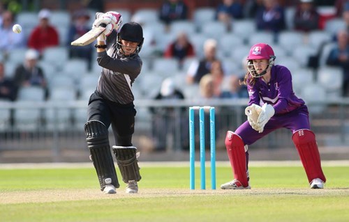 Thunder’s pursuit began even more poorly than Lightning’s had. Georgie Boyce was lbw to Kelly for one and Cross caught at mid-off with Ballinger the successful bowler for nine, both wickets falling in the first three overs, and when Ecclestone was leg before to Kathryn Bryce for two, the home side were 25 for three after 4.5 overs.