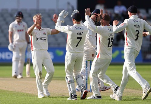 Once settled Browne and Tom Westley played steadily to reach lunch without further damage on 74-1 and had added 28 to that total before Westley tried to sweep a Matt Parkinson delivery that was perhaps just too far wide of off stump for the shot. The resultant top edge went straight up in the air and was easily caught by Salt next to the stumps.