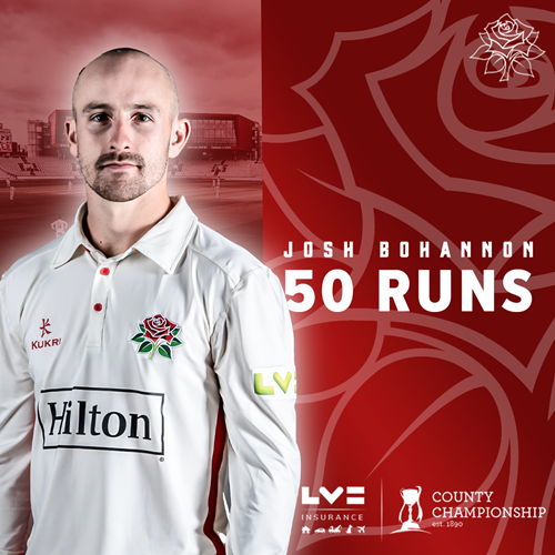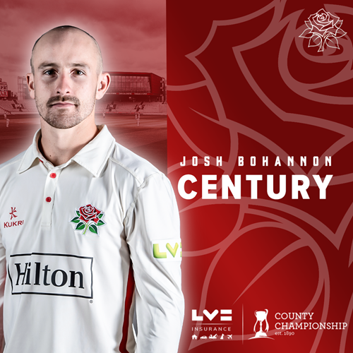 Into the afternoon session and Josh Bohannon now has reached his half-century off 106 balls and the 100 partnership arrived off 203 balls when the Boltonian cut Ryan Higgins through gully for 4.