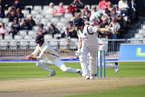 Yates has gone now after being bowled for 55 by an absolute snorter of a delivery from Luke Wood!