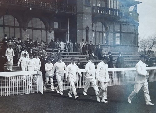 I love this photograph from 100 Years Ago today of Lancashire taking the field on the first day of the season to play Glamorgan!