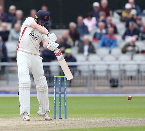 An excellent start by Lancashire as play continues under cloudy skies with the floodlights on.