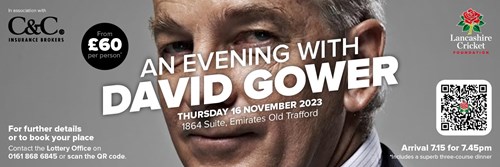 Join us at Emirates Old Trafford for a very special evening on Thursday 16 November when our guest is cricketing legend David Gower OBE.