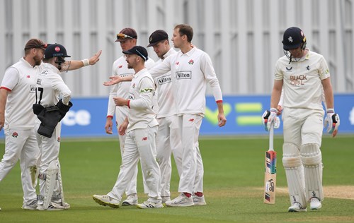 At that point the most optimistic scenario was a victory inside three days, but Lancashire’s openers Wells and Jennings had raced to 55 without loss when an early tea was taken due to a brief shower and by then the mood around the Spitfire Ground was beginning to darken again.