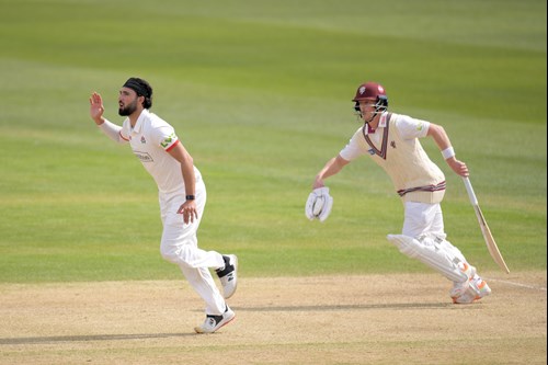 Rew survived a straightforward slip chance to de Grandhomme in the slips on nine off Saqib Mahmood before a shower brought an early lunch at 12.50pm with Somerset 121 for four, a lead of eight runs.