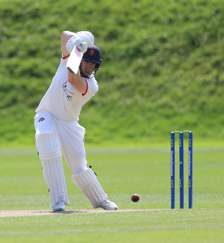 Rob Jones drives Matt Critchley to the long-off boundary for his sixth four to reach his fifty off 98 balls (plus 1 six!).