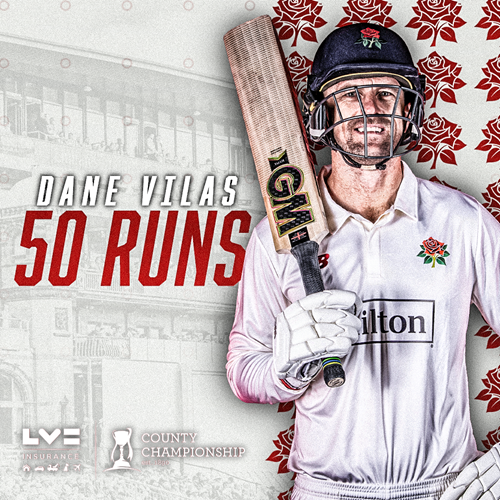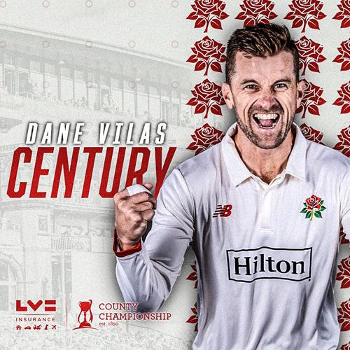 Fabulous! Dane Vilas, in his last season with the Red Rose, cuts for four to reach his 25th first-class century and 10th for Lancashire.