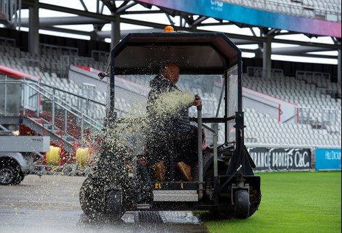 Some greatwork by the groundstaff means play will start at 2pm with a minimum of 59 overs to be bowled.