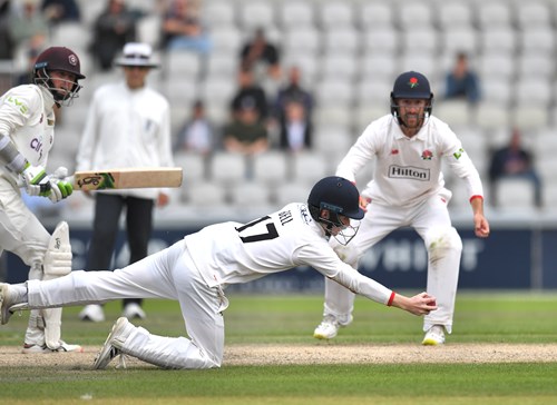 Meanwhile Lancashire have four men crouched around the batters: slip, silly mid-off, leg gully and short leg.