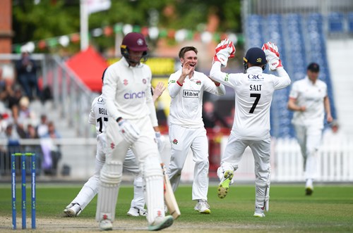 George Balderson came on for his first bowl today a few overs ago, while Jack Morley looks to have settled into a good rhythm at the James Anderson end.