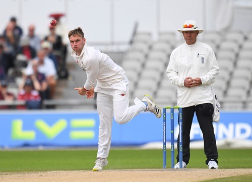 A lovely delivery from Jack Morley spins sharply into middle stump to bowl James Sales for 11.