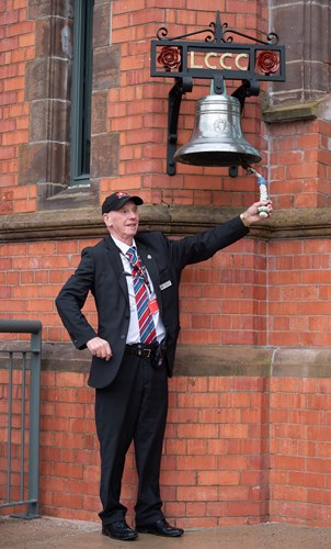In the meantime, here's a picture from earlier when our well-known steward Stan Pritchard rang the pavilion bell before play.