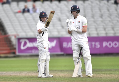 Jack Blatherwick has hit a couple of boundaries to take Lancashire to their first batting point.