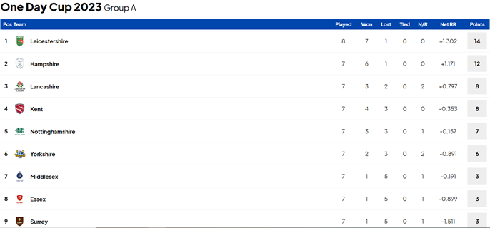 Group A leaders Leicestershire and second-placed Hampshire are already assured progression, so only one place remains up for grabs.