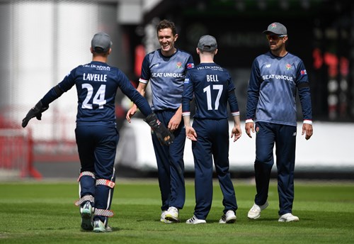 Kyle Hogg and Jordan Clark, the latter now a Surrey player, took two wickets apiece for Lancashire before Ashwell Prince top-scored for the visitors with 76 off 73 balls.