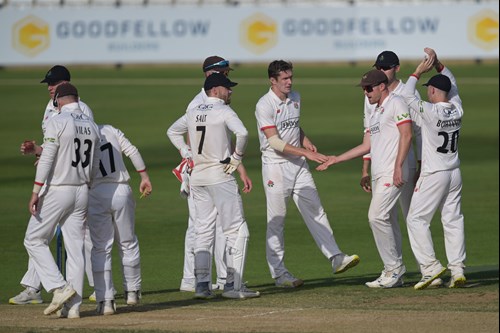 Lancashire began the day on 392 for seven leading by 160, but soon lost Tom Hartley (28) who edged Jack White to first slip.