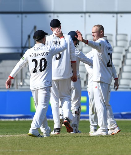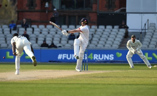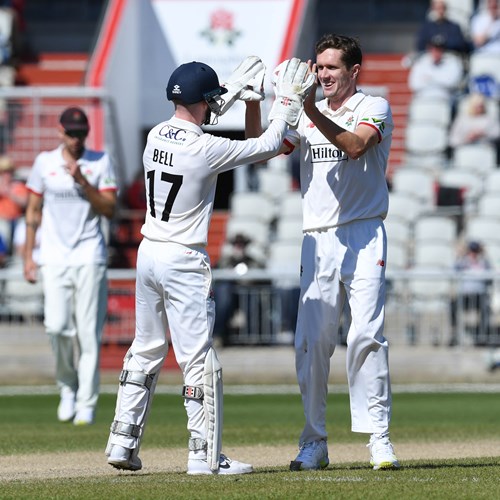 With six overs to bat before lunch Will Williams struck with the last ball of the session, trapping Sibley plumb lbw for 6, and in the circumstances the Red Rose attack managed to contain the visitors’ scoring fairly effectively during the afternoon.