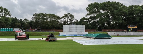 At that point the rain arrived to take the players from the field for more than six hours, and it was a testament to the Blackpool club that their outfield, re-laid three years ago, coped admirably with the deluge that fell during the day.