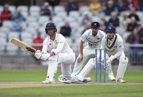 But just when Wells seemed certain to reach three figures, he was tempted down the pitch on 97 by Jayant only to edge behind where John Simpson took a smart catch and – for good measure – completed a stumping, both umpires giving Wells out simultaneously but with the catch the one to count.