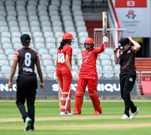 Thunder and Central Sparks conjured up a thrilling tie in a rain affected Rachael Heyhoe Flint Trophy match at Emirates Old Trafford. Chasing a Duckworth/Lewis/Stern method revised target of 224 off 45 overs, the Sparks last pair of Davina Perrin and Grace Potts scrambled seven of the eight runs required from the final over to finish on 223 for nine with captain Eve Jones top-scoring for the visitors with 69.