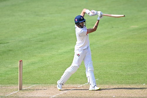 Jack Haynes proved to be a more patient accomplice, content with diligent accumulation as his captain cashed in on his form to dominate the bowling, most productively through the on side. Having reached his half-century from 99 balls, Hameed went past 100 in just 63 more, bringing up the milestone with his 15th boundary, tucked away backward of square off Balderson.