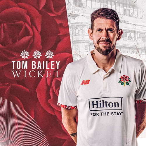 Tom Bailey has thumped a couple of fours but attempting to slog a third off Lewis Gregory instead finds Tom Kohler-Cadmore at mid-on for 16.