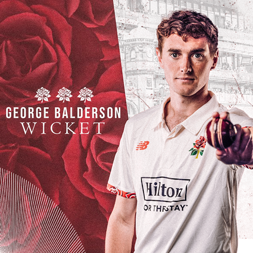 Lancashire have a second wicket as Archie Vaughan swishes at George Balderson and edges behind for 21.