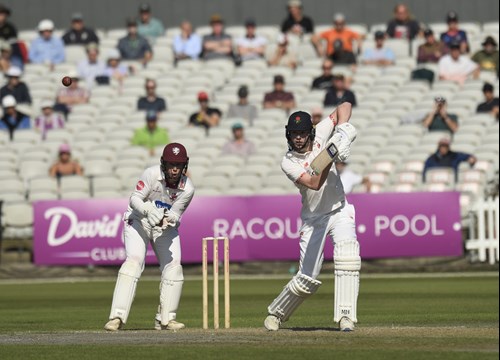 Luke Wells and George Bell are building a terrific partnership, now worth 82 runs to put the pressure back on Somerset.
