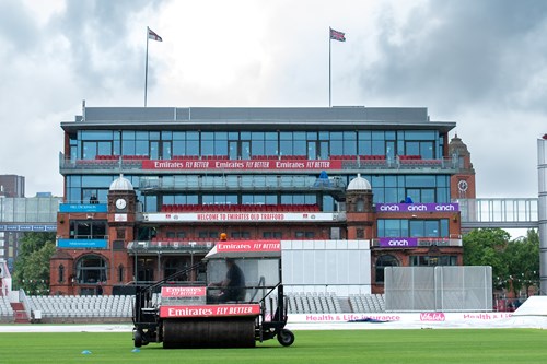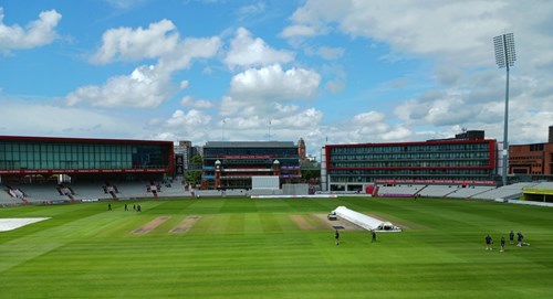The last shower has moved on and bright sunshine currently bathes Emirates Old Trafford.