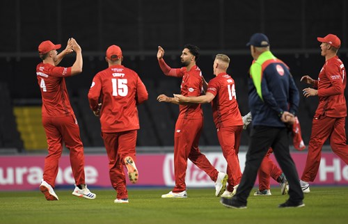 Pakistani fast bowler Shaheen Shah Afridi bowled Jos Buttler for 23 to leave Lancashire two down, and captain Liam Livingstone ended as top-scorer with 34.