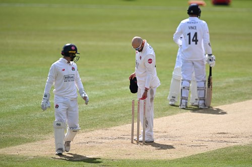 He teased Vince with different flights – tempting the Hampshire skipper to almost hole out of long on – he flirted with front pads and he created his own rough at either end of the pitch so he could have a patch to aim at wherever he was bowling.