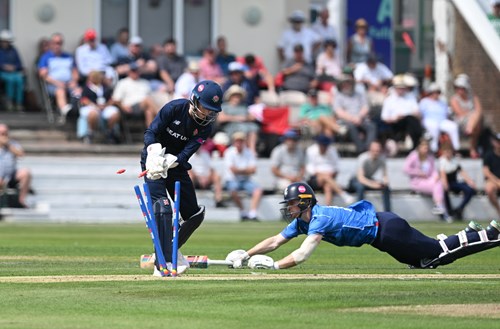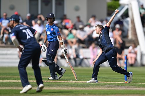 Evison, having batted steadily, was run out for 22 by a smart piece of fielding by Blatherwick at mid-on and Ekansh Singh top edged Sutton to Lavelle at point for 15 to leave the visitors on 61 for three.