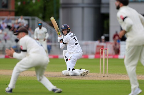 Hurst reached his third first-class half century from a very patient 134 balls that included just one boundary shortly before the break, but then edged a sharply-turning delivery from Parkinson to slip for 58, just after the resumption to be the eighth wicket to fall.