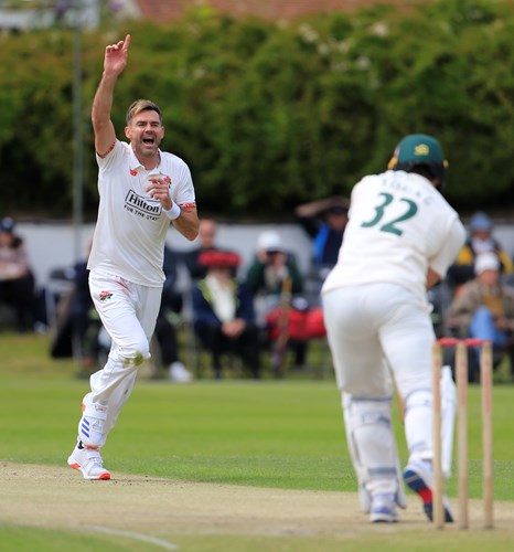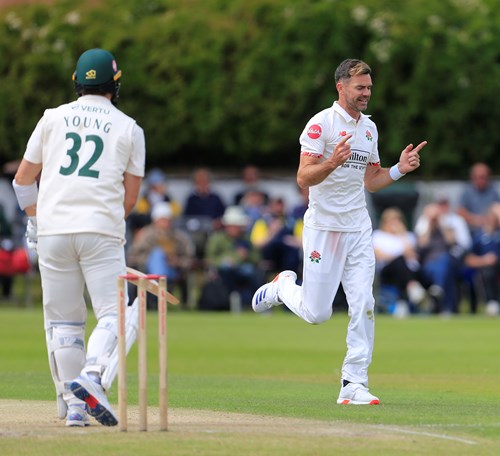 James Anderson struck with his seventeenth ball of the final day when Will Young edged behind for 17 after pushing forward at another good length delivery to give Lancashire early hope.
