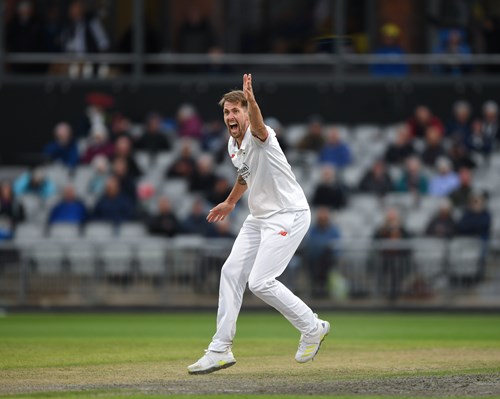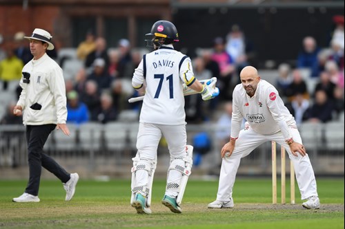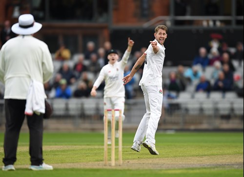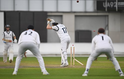 The tall Red Rose bowler angled the ball back into Rob Yates from around the wicket to bowl the left-hand batter for 19 offering no shot.
