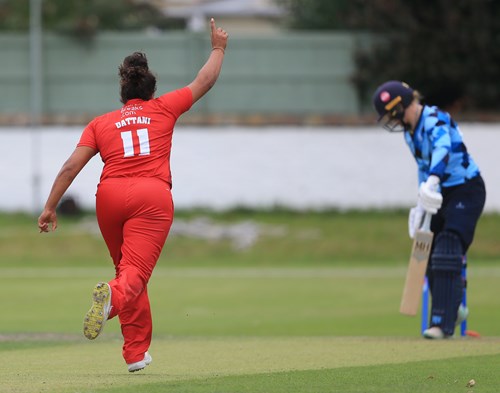Winfield-Hill, dropped on 14, posted an otherwise flawless fifty from 59 balls that included 6 fours but was bowled off the next delivery from left arm spinner Hannah Jones. And the Diamonds suffered a big blow four balls later when captain Hollie Armitage was bowled by Naomi Dattani for 0.
