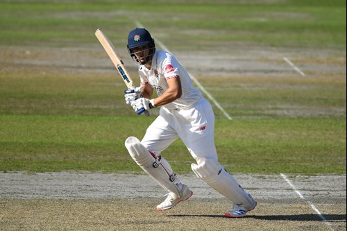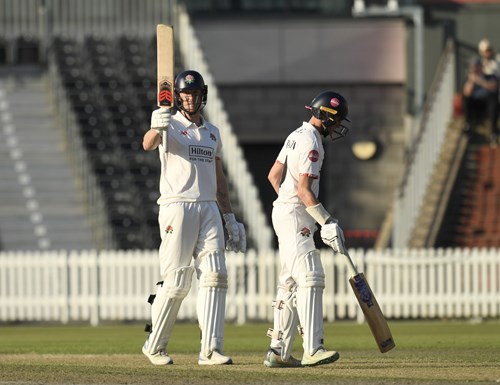 Once the initial task, to rebuild and establish themselves, had been achieved they pushed on after the interval with Wells in particular attacking whenever possible and reaching his half century from 98 balls when hitting Randell for four to deep extra cover three times in one over.