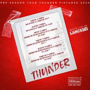 - Monday 18 March: Bangalore Representative XI vs Thunder – 50 over match at Venue TBC. – LIVE on LancsTV