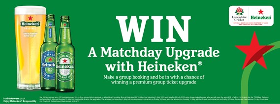 Lancashire Cricket’s long-term beer and cider partner, Heineken, will be offering group ticket buyers the chance to receive an exclusive upgrade that will include complimentary food and drinks throughout the match day experience.