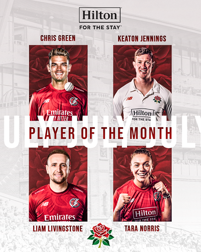Four players are in the running for Lancashire Cricket's July Player of the Month, sponsored by Hilton.