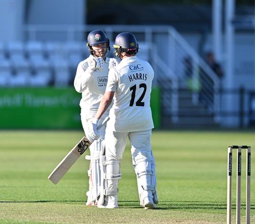 Harris looked less comfortable early doors, edging just in front of the keeper and wide of the slips and was dropped in the slips on 28. He started to hit his stride though with some handsome drives.