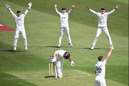 Three balls later Saif Zaib had a rush of blood, charging down the pitch to Balderson, edging to Jennings at second slip to leave Northamptonshire reeling.