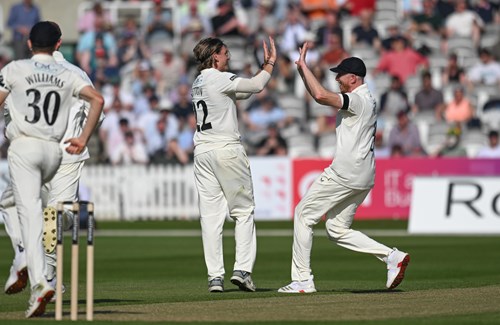 Wells redeemed himself by coming on for an over of leg-breaks just before lunch to pin Robson lbw on the back foot with his fifth ball.