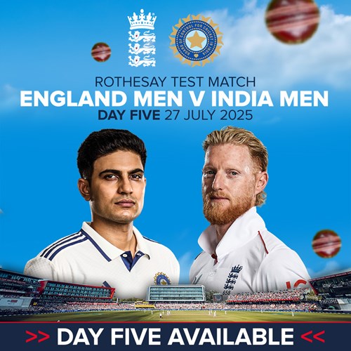 Due to overwhelming demand and with each of the first three Test matches going the full five days, tickets for Day 5 of the eagerly awaited Emirates Old Trafford Test Match between England and India - starting next Wednesday (21 July) - are now on sale.