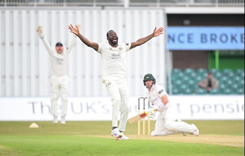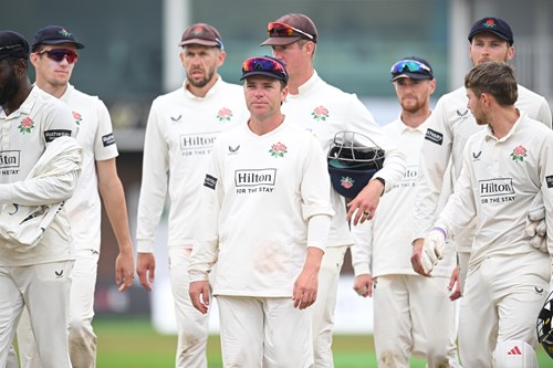The two right-handers faced a real battle for the first hour, with Lancashire seamers Tom Bailey and George Balderson both beating the bat on several occasions. No chances were created however, the nearest either batsman coming to dismissal being when Ahmed called Hill through for a single that would have seen his team-mate back in the pavilion had Josh Bohannon's throw not missed the stumps by a whisker.