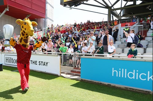 There are 1,500 or so school children in attendance today currently chanting "hit the ball repeatedly." They enjoyed that shot.