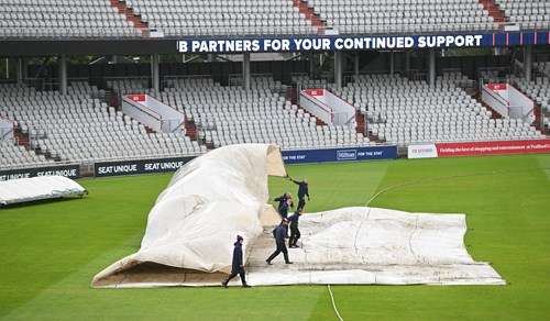Two balls later the players are scurrying off as a sudden heavy shower arrives.