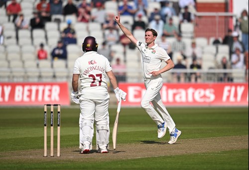That miss of Vasconcelos didn't prove too costly as the left hand opener on 16 edges George Balderson behind with Matty Hurst taking the catch in front of first slip.